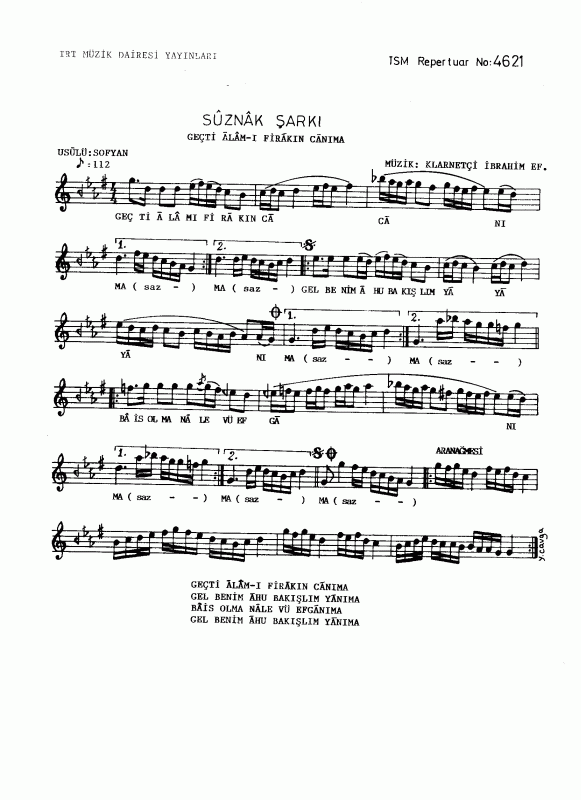 Geçti âlâm-ı firâkın cânıma Sözleri ve Notaları